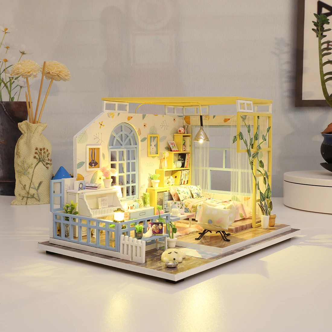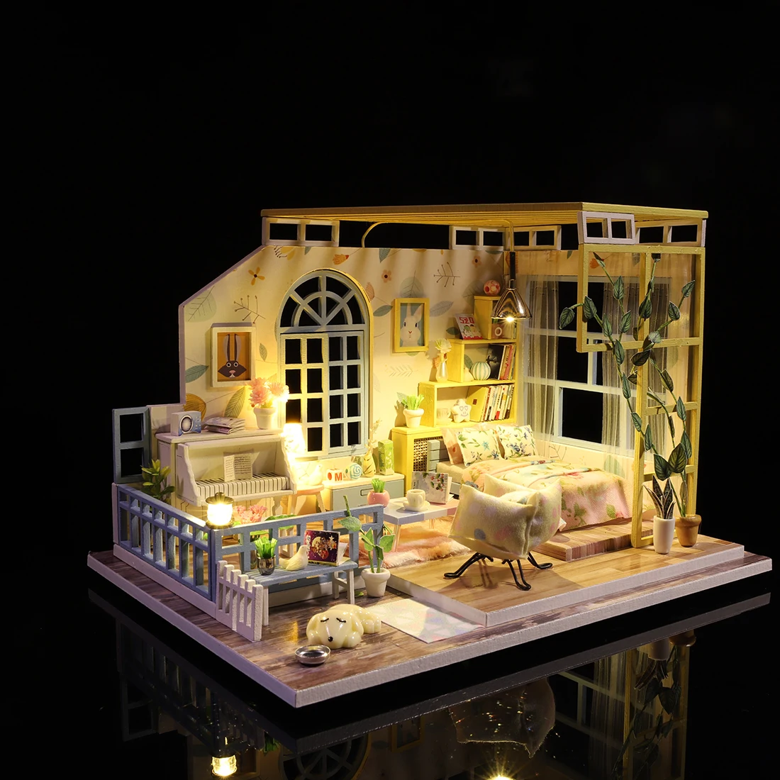 BEST Dollhouse DIY Cabin Assembled Toy Model Set Villa Wooden Crafts Handmade Assembly House Model Gift
