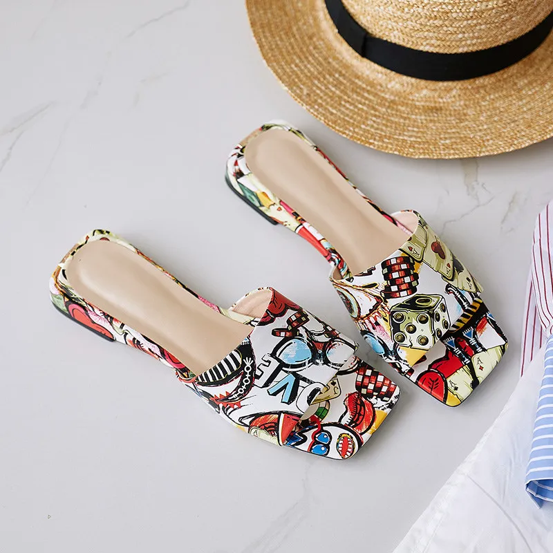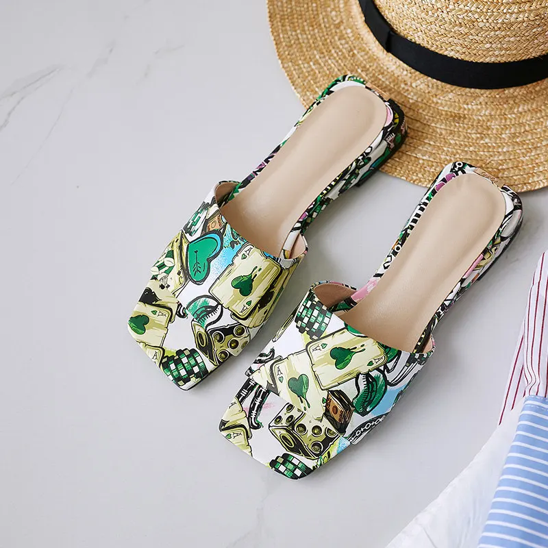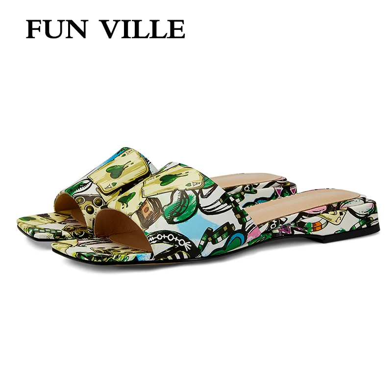 FUN VILLE New Fashion Colorful Summer Slippers Genuine Leather Women Outside Slippers Sweet Female