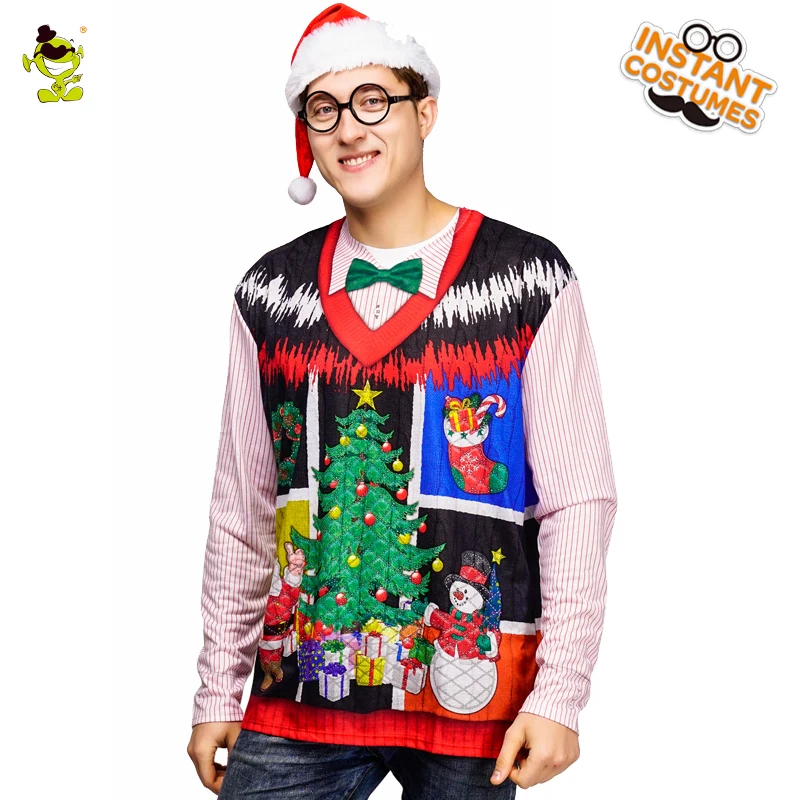 HIGH QUALITY Man Christmas Santa 3DT Shirt Cosplay Costume Adult Christmas Cartoon Fun Print Long Sleeve Masquer