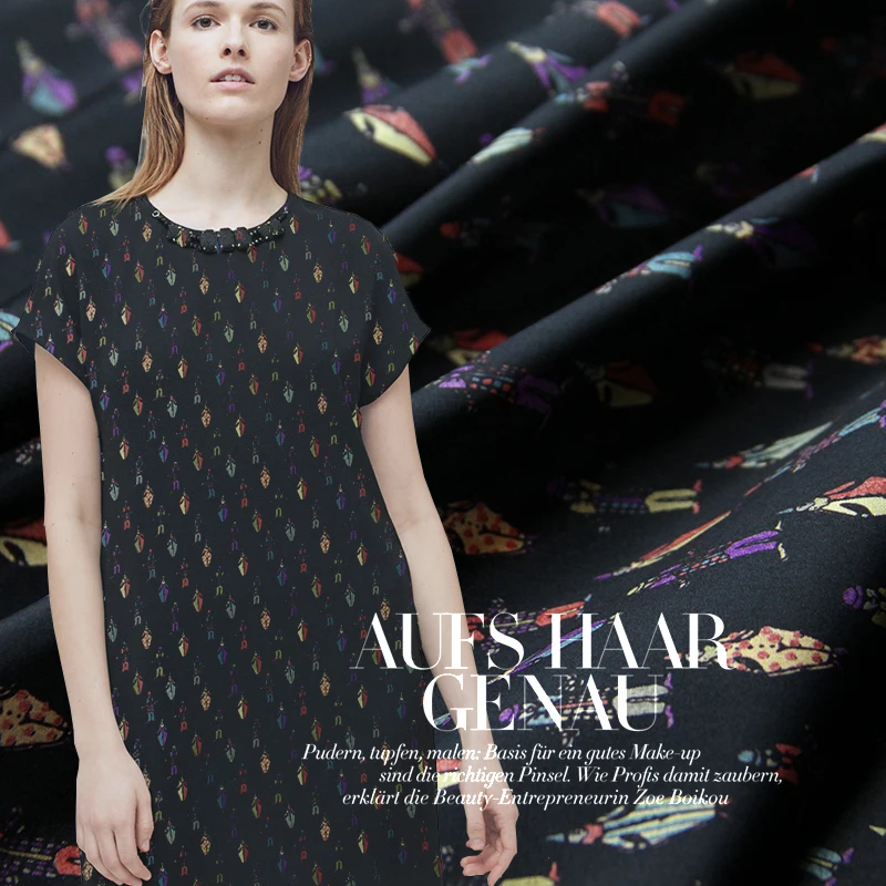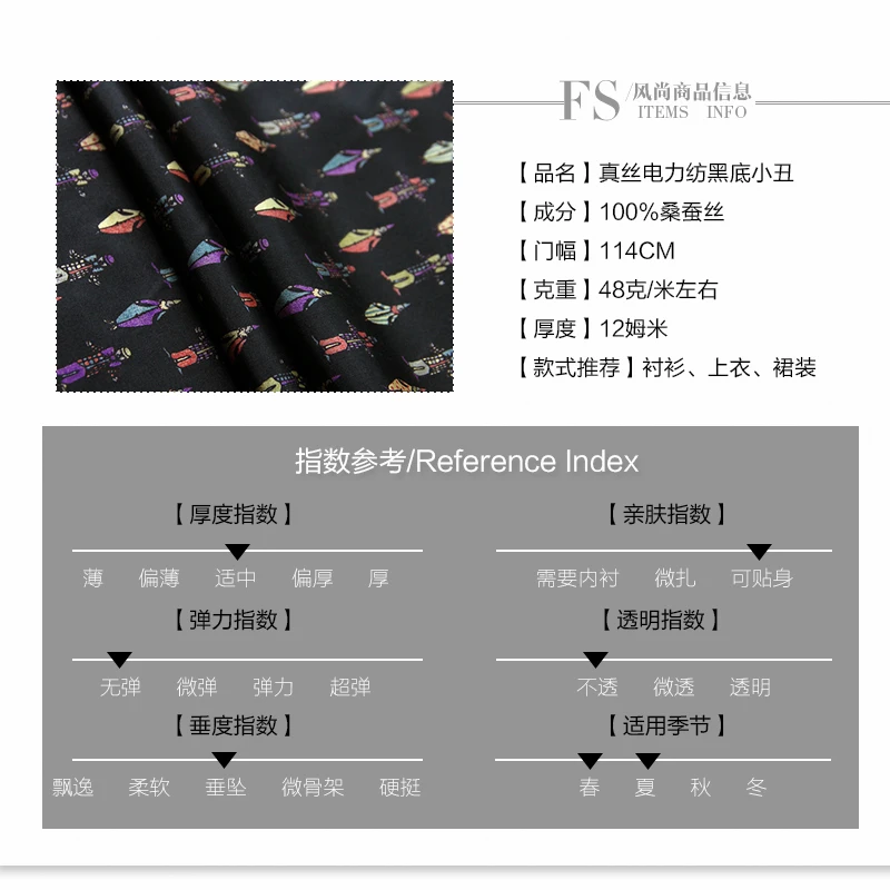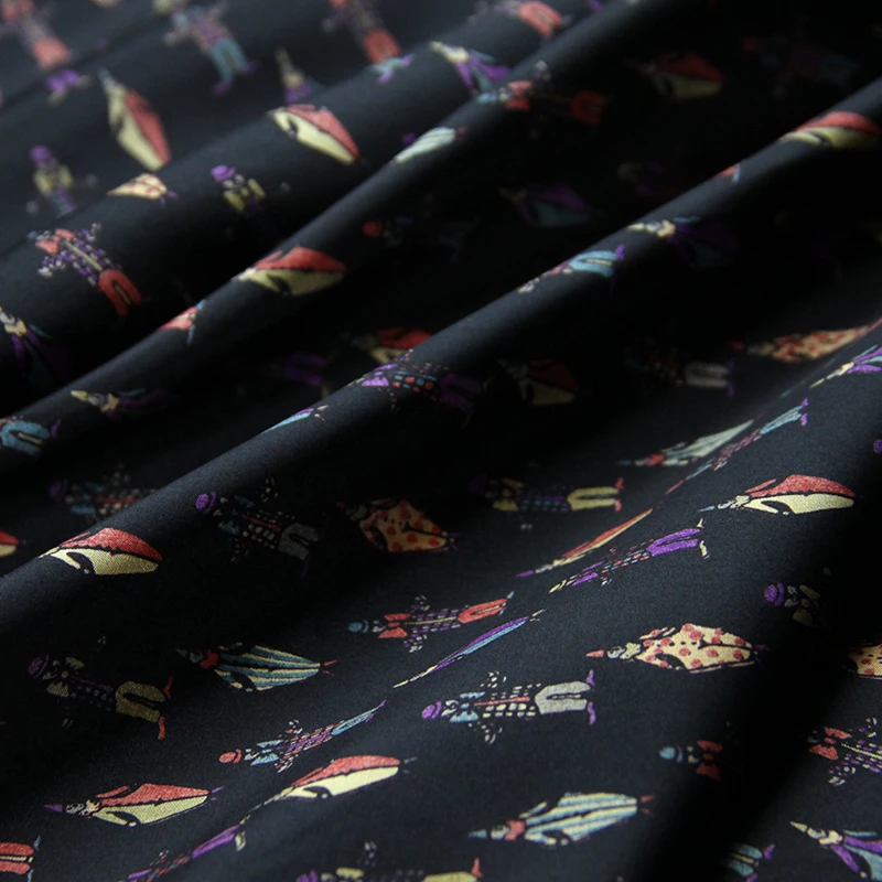 Fun little devil 100% silk black clown cartoon printing power spinning fabric cloth summer dress