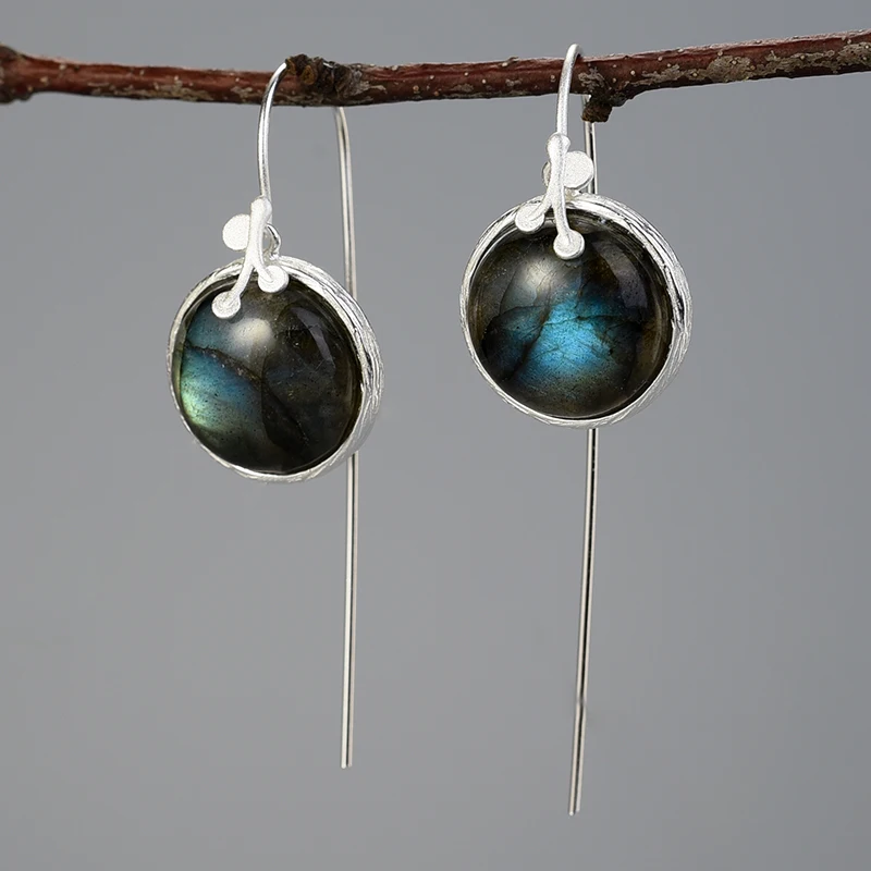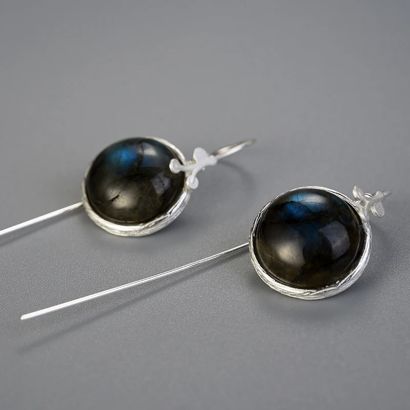 Best Seller Lotus Fun Natural Labradorite Gemstone Drop Earrings Real 925 Sterling Silver 18K Gold Leaves Earri