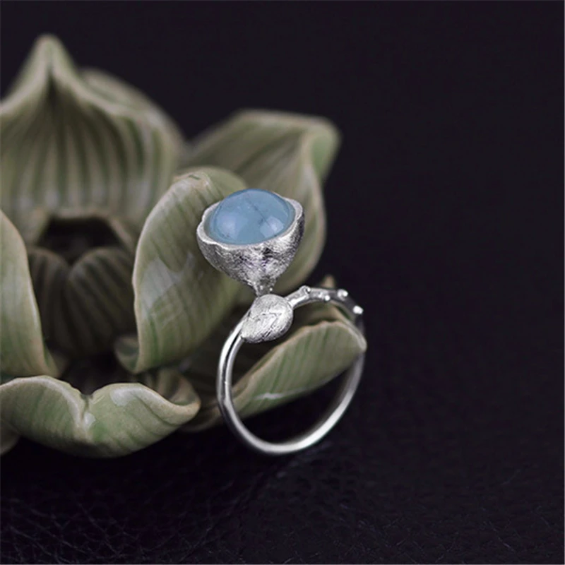 HIGH QUALITY Lotus Fun Real 925 Sterling Silver Natural Stone Handmade Designer Fine Jewelry Elegant Lotus Buds