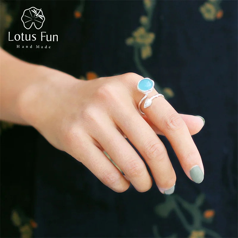 Lotus Fun Real 925 Sterling Silver Natural Stone Handmade Designer Fine Jewelry Elegant Lotus Buds