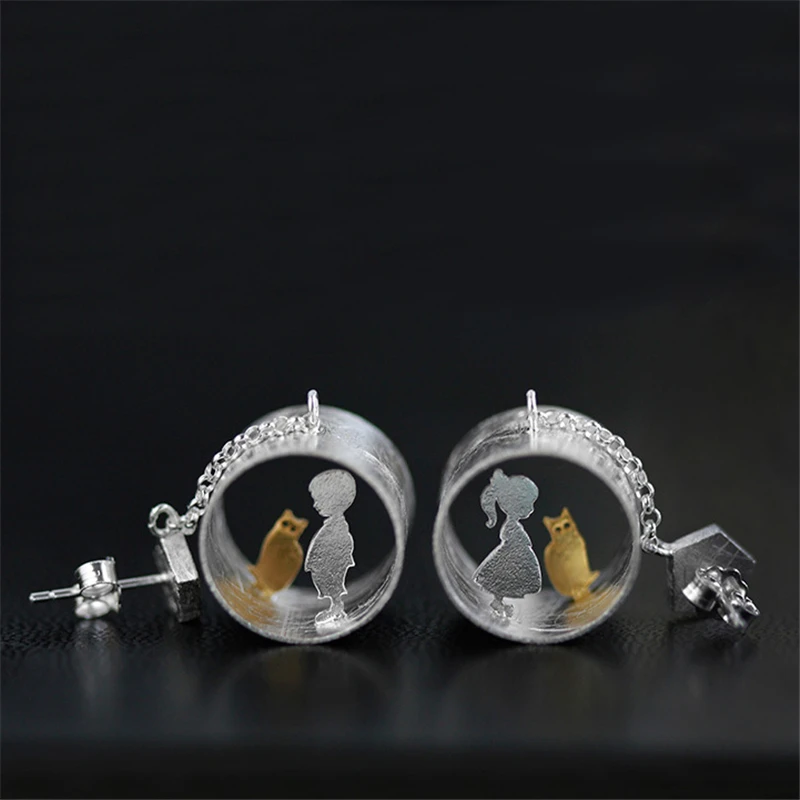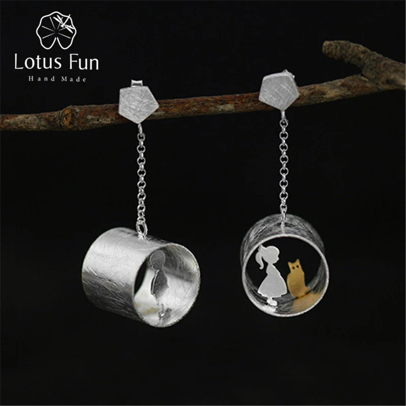 Lotus Fun Real 925 Sterling Silver Natural Creative Handmade Fine Jewelry Meeting Love With Cat Dro