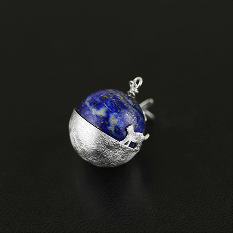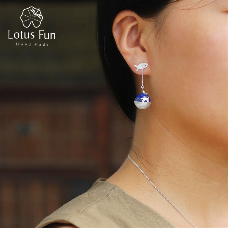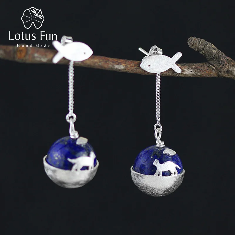 Lotus Fun Real 925 Sterling Silver Natural Lapis Creative Handmade Fine Jewelry Cat's Dream Dangle