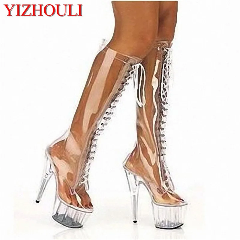 BEST SELLER 15cm front strap high-heeled shoes sexy transparent fun women's shoes Very hot sales boots 6 inch h