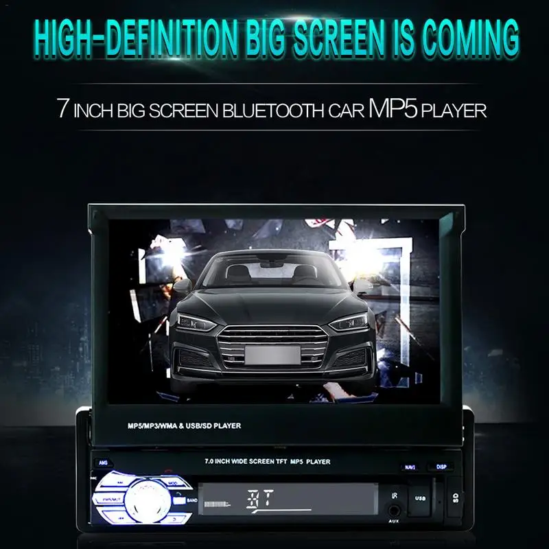 BEST QUALITY 7" Car Car MP5 Player Stereo RDS AM FM Radio GPS Navigation Retractable 1 DIN Touch Screen USB Blue