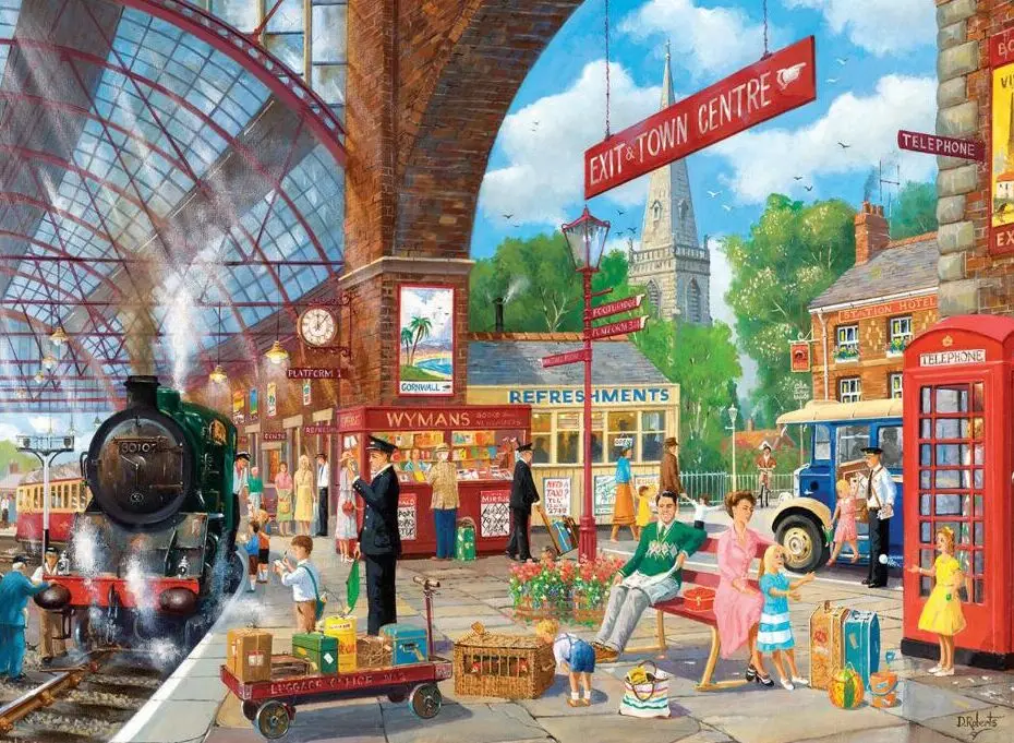 Fun old train station The wooden puzzle 1000 pieces ersion jigsaw puzzle white card adult children'