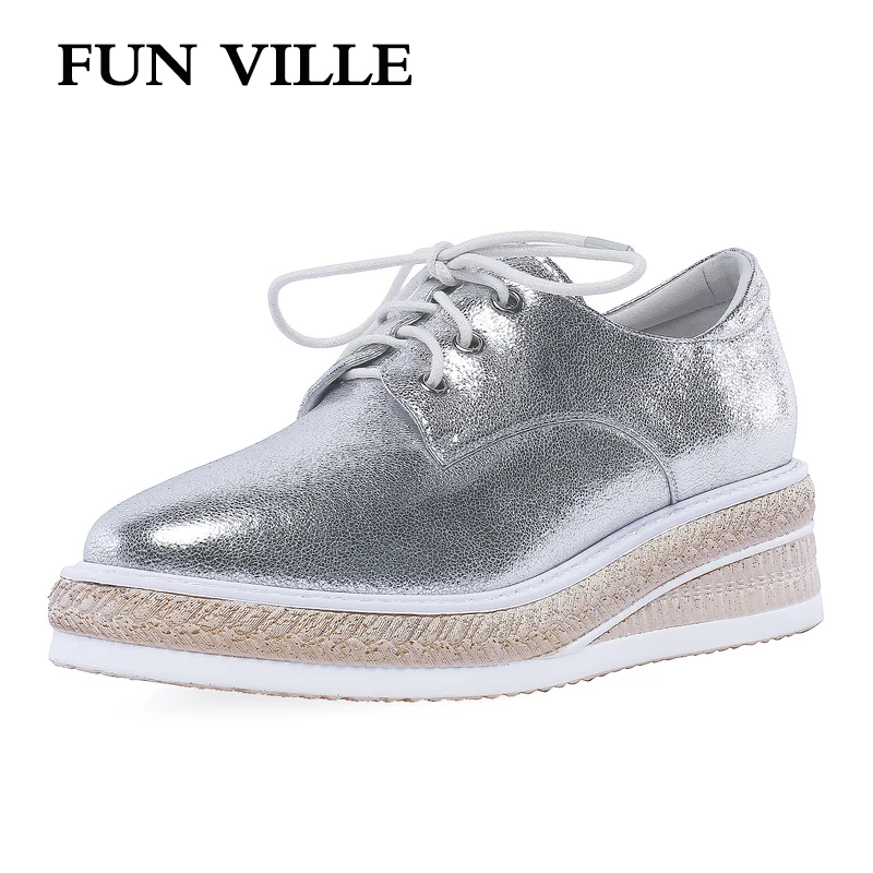 Best Quality FUN VILLE New Fashion Genuine Leather Women Flats shoes Spring Autumn Thick Platform Casual shoes R