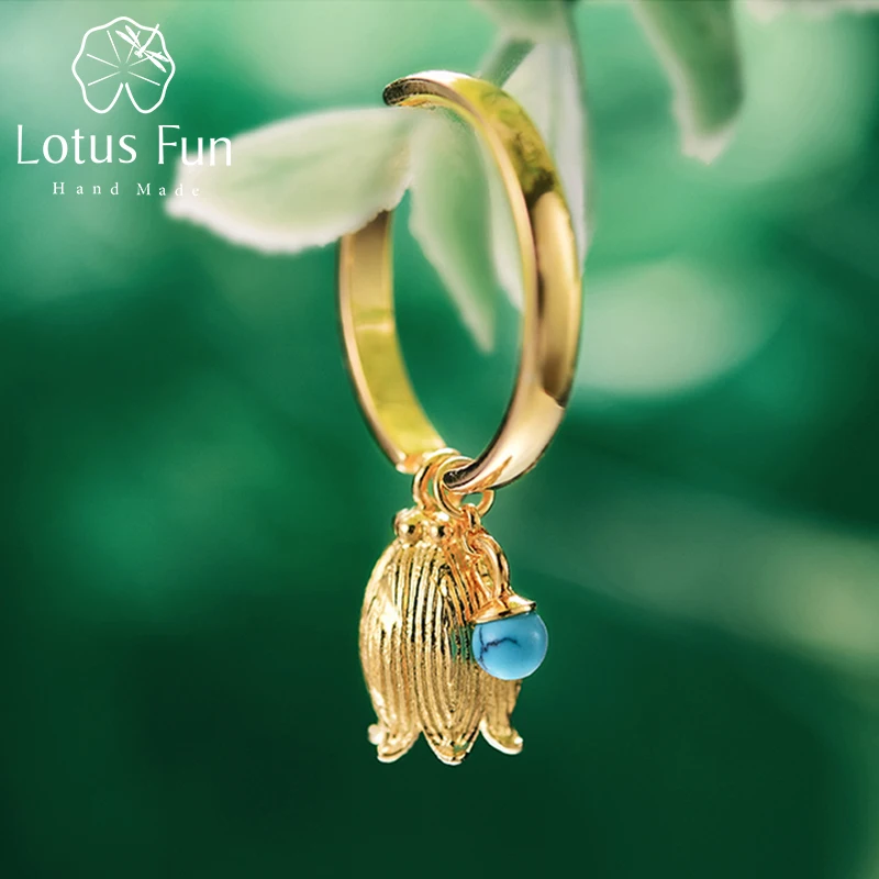 HOT Sale Lotus Fun Real 925 Sterling Silver Natural Turquoise Handmade Designer Fine Jewelry Redbud Flower R
