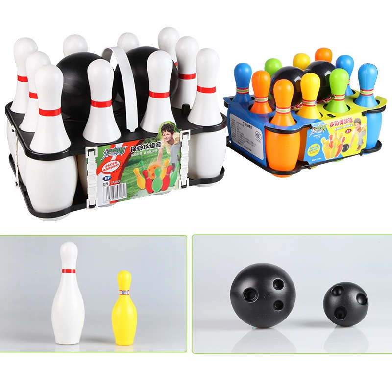 Colorful Standard Kids Plastic Bowling Set with Ball and Pins Interaction Leisure Educational Toys