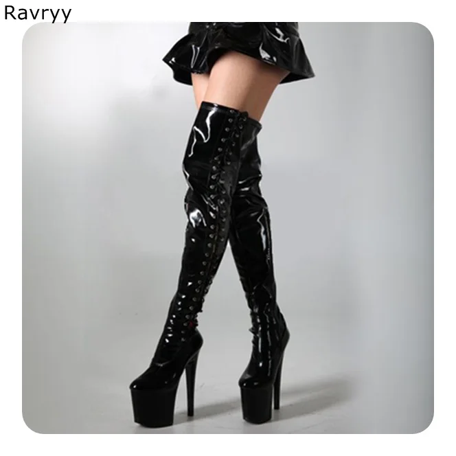 HIGH QUALITY Cross-tied black Woman long boots Pole dance Model Show Fun Club Party Female Shoes Buckle decor pl