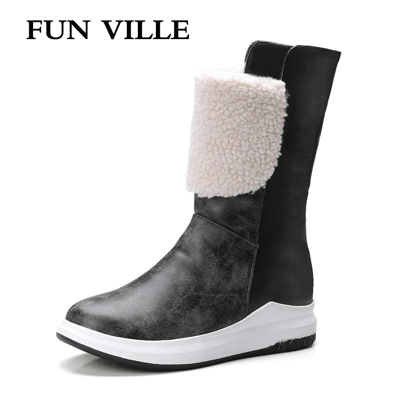 REVIEW TOP SELLER FUN VILLE New winter Women Mid calf Boots Sweet Warm Snow boots for woman Round toe Thick Heel Plat
