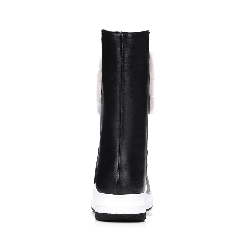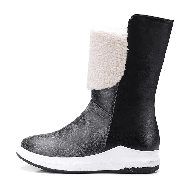 FUN VILLE New winter Women Mid calf Boots Sweet Warm Snow boots for woman Round toe Thick Heel Plat