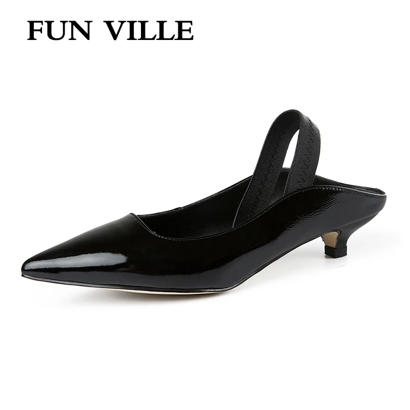 FUN VILLE Spring Summer New Fashion Women sandals British Style Patent Leather Med Heels Shoes Sexy